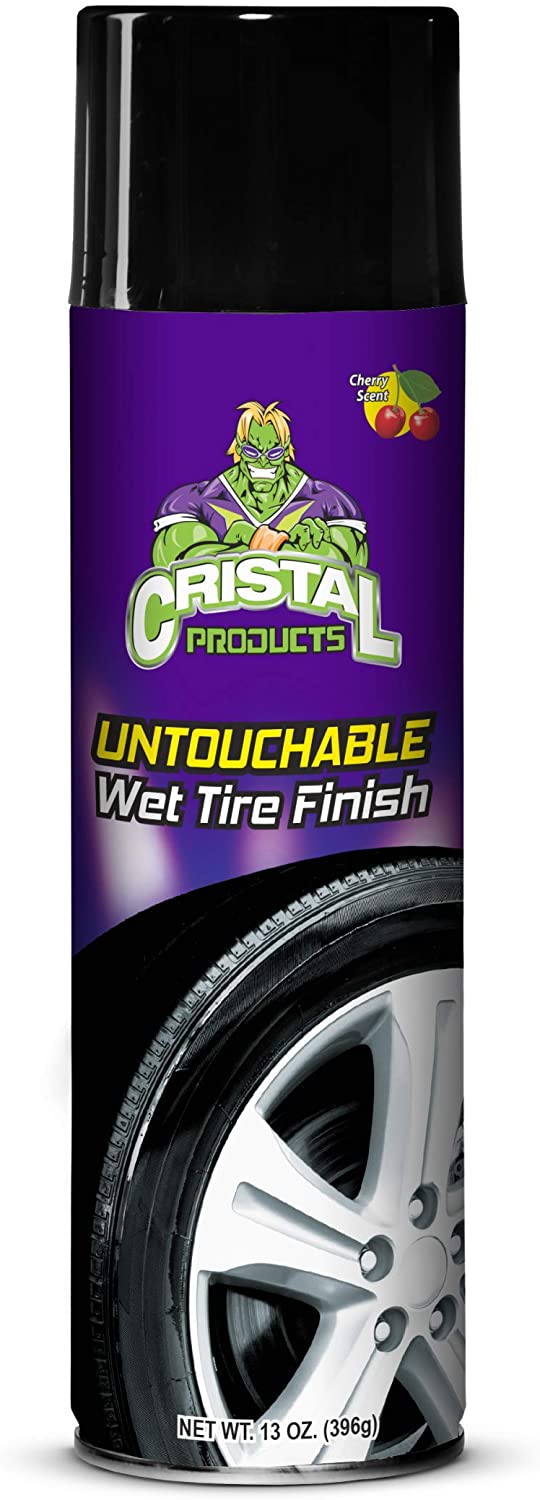 Cristal Untouchable offers long term shine, protection and durability. Gives an insane wet look that is fast and easy. It dries instantly while using a silicone based system that adheres to the tires surface. USE AND APLICATION: 1) First make sure that tires are clean and dry. 2) Second, shake well before use and hold can in vertical position. 3) Then uniformly spray and maintain at least 3' inches distances from tire. 4) Leave products to dry for 3-5 minutes. 5) Do not wipe. Any excess or spill will dry up leaving a radiant shine. 6) Repeat use for optimum shine.