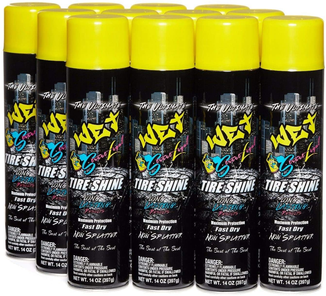 Street Legal Wet Tire Shine 12PACK Can 14 oz- Spraying tire Shine Maximum Protection Fast Dry - Non Splatter Shine Wheels Tire Care Long Lasting and Rain Resistant tire Rubber Moulding Bumpers
